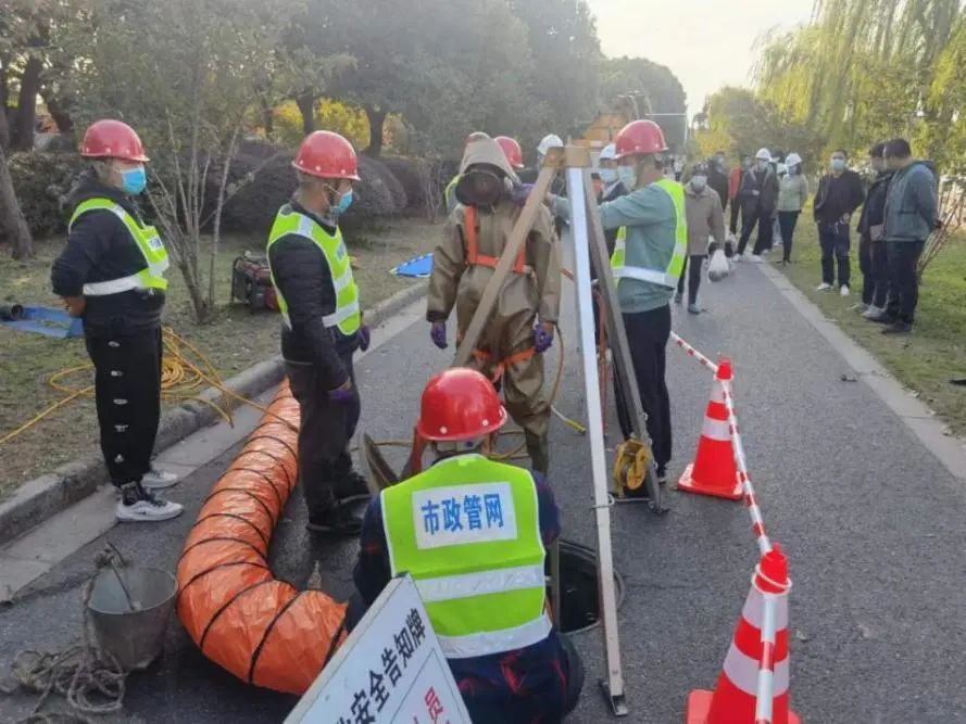 “報告總指揮,實操演練人員已集結完畢,請指示!”現場指揮向總指揮請示后開始演練。在對參演人員進行作業安全風險告知后,演練人員嚴格按照“先通風、再檢測、后作業”的原則,首先對有限空間內采取強制性持續通風措施,再使用便攜式氣體檢測儀對空間內氣體濃度進行檢測。符合安全規范要求后,作業人員依次佩戴安全帶、安全繩、呼吸面罩等防護用品,并經安全員檢查確認,在監護人員輔助下進入有限空間進行作業。整個演練過程井然有序,有條不紊,取得了預期的效果。