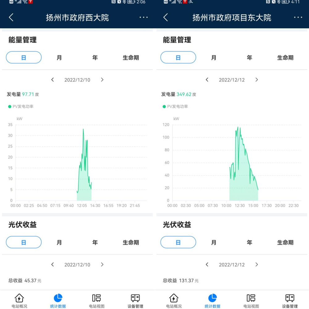 市政府東、西大院分布式光伏項目采用“自發自用,余電上網”的運營模式,運營期25年,年均發電量約為70萬千瓦時,同燃煤火電站相比,每年可節約燃煤約252噸,減少溫室氣體二氧化碳排放約697.9噸,相當于植樹造林380棵。