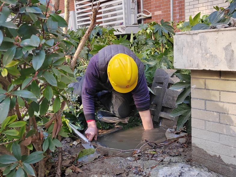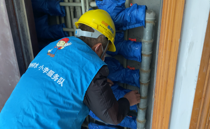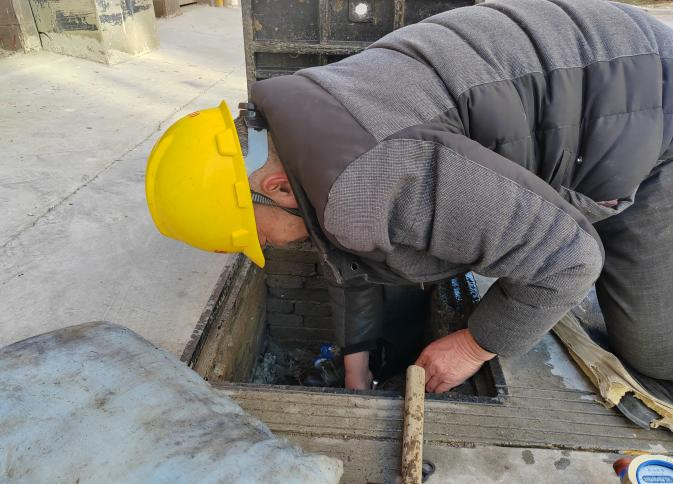 雖然此時的室外氣溫降至-5℃,但是維修師傅二話不說,脫去外套,拿起工具,擼起袖子,雙手浸泡在冰冷的污水中尋找閥門,在關閉閥門后,排出污水,更換凍損水表,為居民恢復了供水。