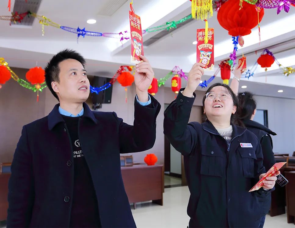 本次猜燈謎活動內容豐富,且兼具知識性與趣味性,包含成語故事、傳統民俗、字謎等。面對一道道燈謎,大家積極響應,踴躍參與,時而駐足沉思、時而輕聲討論、時而喜笑顏開,氣氛熱烈歡騰。活動最后,公司為全體職工送上了花燈。