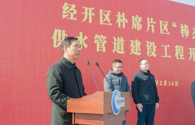 經開區管委會副主任楊斌代表揚州經濟技術開發區黨工委、管委會致辭,他表示,實施樸席片區供水管道建設工程,不僅滿足了“棒杰項目”生產運營的迫切需要,同時也完善了樸席片區水網格局的構建,為未來樸席片區可持續發展奠定了基石,為經開區“棒杰項目”的落戶提供了充分的保障。