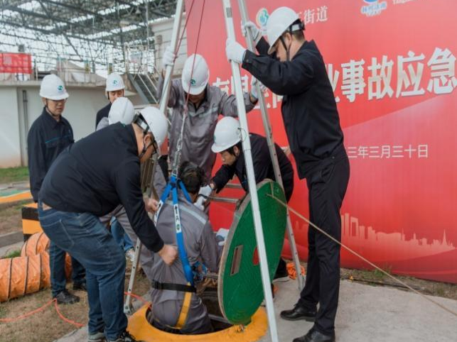 3月份,有限空間作業(yè)事故開始進入高發(fā)季節(jié),近期全國發(fā)生多起有限空間中毒致人死亡事故。3月30日,潔源排水公司按照相關(guān)要求和工作計劃,組織開展有限空間作業(yè)事故應(yīng)急救援演練。廣陵區(qū)應(yīng)急管理局、湯汪街道、湯汪街道所屬企業(yè)安全管理人員40余人觀摩。公司董事長、總經(jīng)理、安全總監(jiān)及相關(guān)部門人員參與演練。