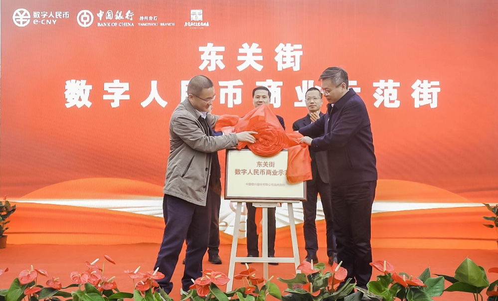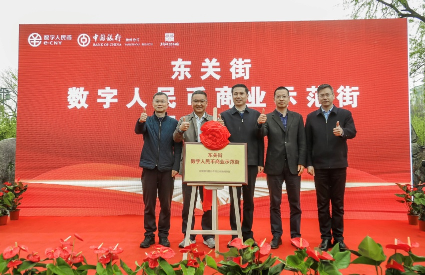 4月6日下午,揚州市首個“數字人民幣商業示范街”揭牌儀式在東關街東門廣場隆重舉行,集團黨委委員、名城公司總經理戴興春,地方金融監管局、商務局、人民銀行揚州市中心支行分管負責人共同出席。