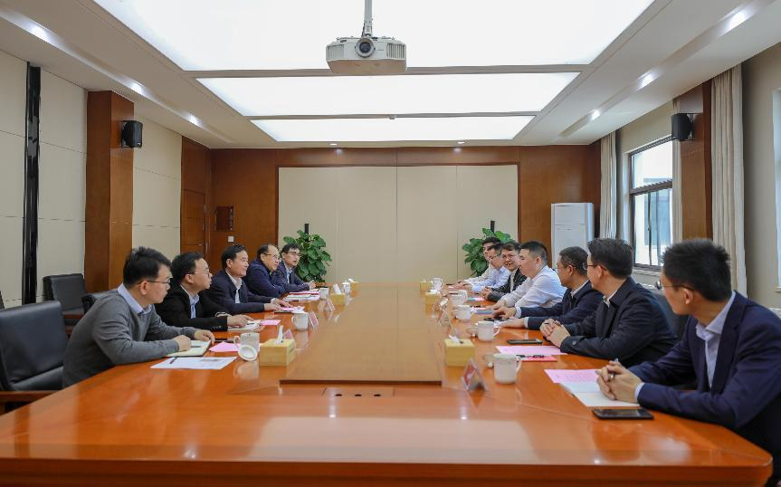 4月11日,黨委書記、董事長葉善祥會見到訪的中交中南工程局黨委書記、董事長劉擁華一行,雙方就進一步加強產業鏈協作,推動高質量發展相關事宜進行深入溝通和交流。集團總會計師何志軍、副總經理吳健及相關部室負責人參加。