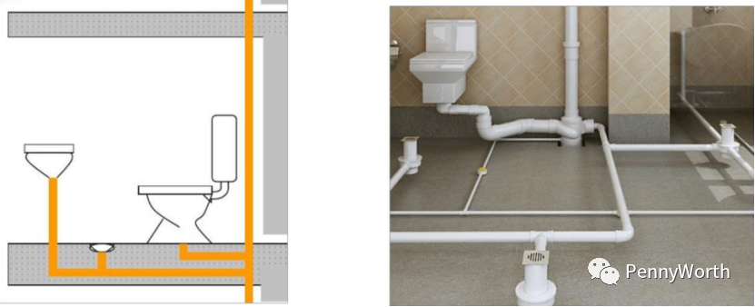 ▲同層排水技術(shù)原理示意圖及實物示意圖(僅示意,最終以現(xiàn)場實際交付為準)
