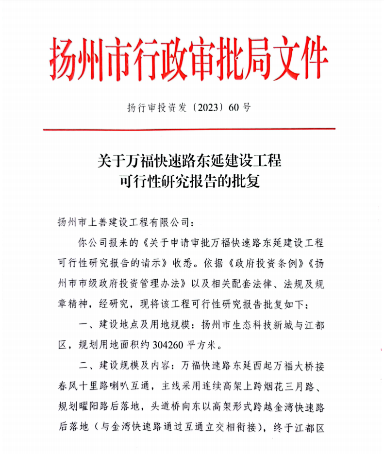 萬??焖俾窎|延的規(guī)劃建設(shè),對完善區(qū)域路網(wǎng)布局,促進區(qū)域經(jīng)濟協(xié)調(diào)發(fā)展等具有重要意義。下階段,上善公司將加快推進初步設(shè)計、征地等工作,力爭早開工、快建設(shè),為“好地方”揚州高質(zhì)量發(fā)展添磚加瓦。