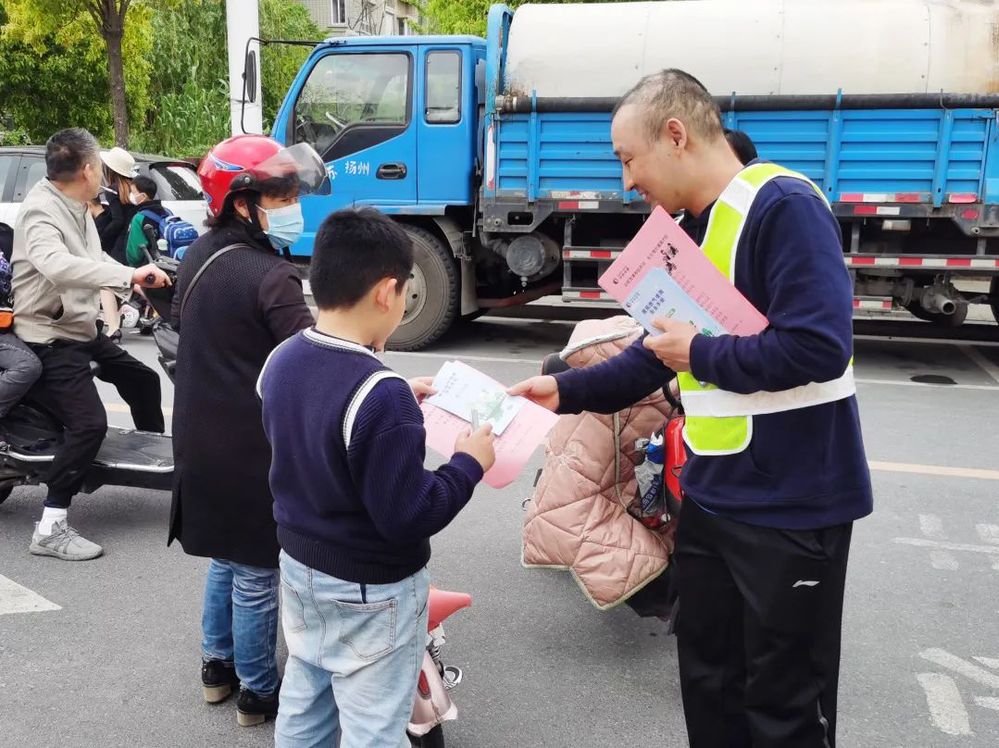 2023年4月28日,揚州中燃公司第五支部“藍焰同心”志愿者在江陽路渡江崗和文峰小學散學點設立交通勸導崗,組織開展“交通安全在心中 幸福快樂伴我行”主題宣傳活動,引導學生從小做起,從自身做起,做到文明禮讓、安全出行、珍愛生命。
