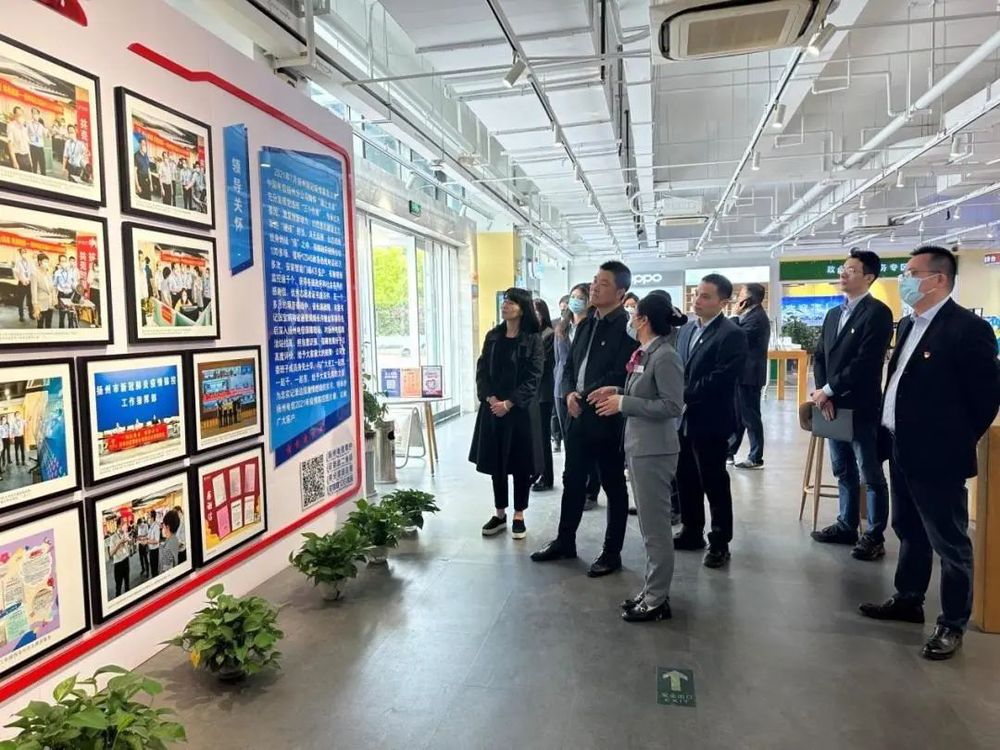 揭牌儀式后,雙方一同參觀了揚州電信新城營業廳及綜合信息服務展示館,工作人員詳細介紹了“愛心翼站”便民服務、智能黨建等模塊,并進行現場演示。參觀過程中雙方進行了深入交流,并計劃在便民服務、網點拓展等方面進一步開展合作。