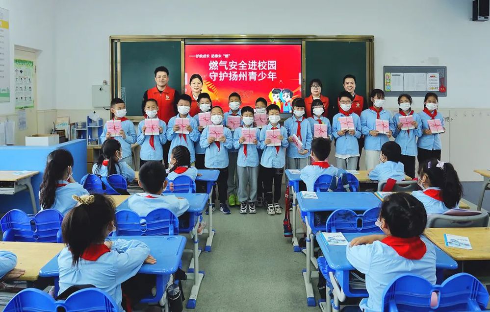 擦亮“藍焰”志愿服務品牌,提升企校安全共建效應。為進一步增強小學生的安全意識,增強使用燃氣時的自護本領,在全社會營造關注青少年燃氣安全教育的濃厚氛圍,2023年3月27日,全國中小學生“安全教育日”當天,揚州中燃公司黨委與梅嶺小學黨委攜手啟動十歲成長之“護航成長·防患未‘燃’”主題黨日活動。