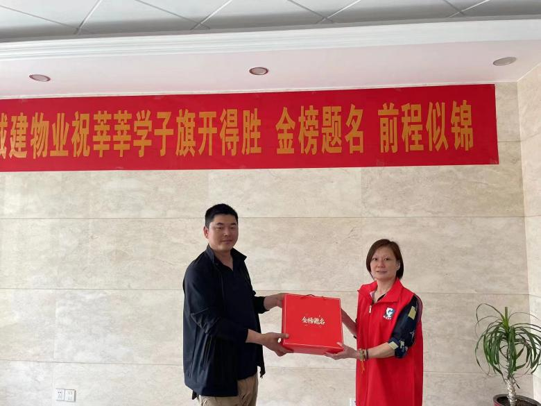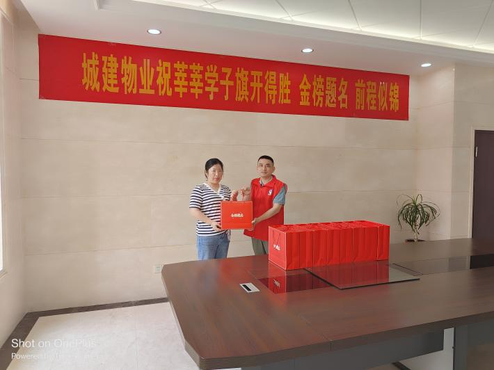 為了向中高考家庭表達(dá)關(guān)心,城建物業(yè)公司早早就統(tǒng)計(jì)了各服務(wù)項(xiàng)目今年參加中高考的家庭數(shù)量,特別定制了“旗開得勝金榜題名”狀元禮盒,并于6月3日上午開展集中慰問活動(dòng),為這些家庭送上了中高考前的祝福。