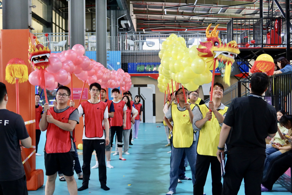 通過破冰活動,工作人員帶領大家進行了活動前的熱身,并向大家介紹龍舟文化的由來和活動注意事項。比賽正式開始,兩支隊伍參賽隊員們團結一心,伴隨著咚咚咚的節奏鼓點聲奮棹爭先,一時間鼓聲、吶喊聲、加油聲此起彼伏,營造出團結、拼搏、奮進的難忘畫面。
