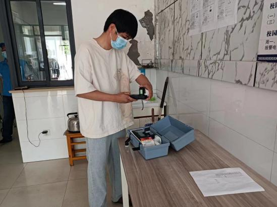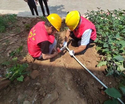 6月15日上午,“561”供水服務隊對楊廟中學附近的供水管網設施進行摸排和重點排查,對沿線管網、閘門進行巡檢,確保中考期間供水設施正常使用,管線運行狀態良好。“561”供水服務隊安排專人與楊廟中學后勤部門對接,告知用水安全注意事項,并走進學校食堂,對水質水壓進行檢測。楊廟中學保密室需要重新鋪設管網,來保障中考期間監考教師的正常生活用水,“561”供水服務隊員立即勘察施工現場,設計接水方案。此時正值中午,太陽炙烤著大地,隊員們一遍遍尋找進水管位置,豆大的汗珠不停地從臉頰滾落,終于發現了支管道方位,在數分鐘的開挖后他們進行了管道焊接,水龍頭流出了嘩啦啦的自來水。校后勤處的老師連聲感謝道:“多虧了‘561’供水服務隊的幫忙,為我們縮短了接水時間,解決了用水問題。”