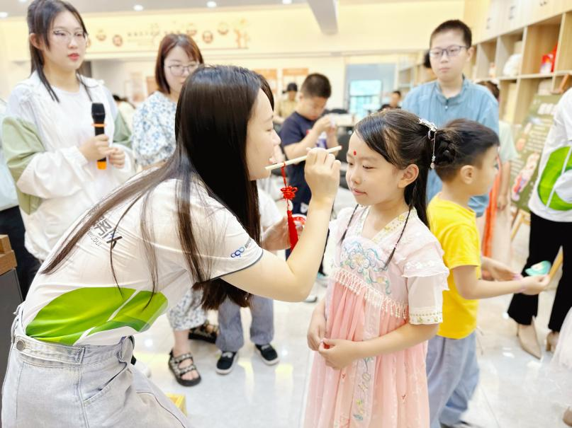 點朱砂俗稱“開天眼”,寓意祝福孩子眼明心亮,一點就通。活動現場,志愿者執筆為孩子們在額頭正中間點朱砂,啟智門——朱砂啟智,為孩子們開啟智慧之門,希望孩子們將來都能成為祖國的棟梁之才。
