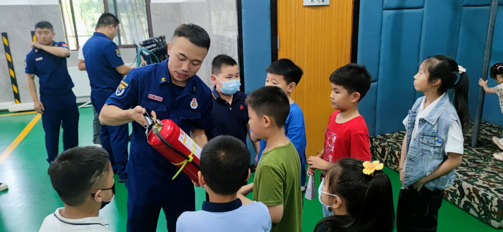 在實操體驗中,消防人員現場邀請小朋友們零距離接觸消防裝備、親身試穿防護服、乘坐消防車、參觀消防救援隊員的日常生活。