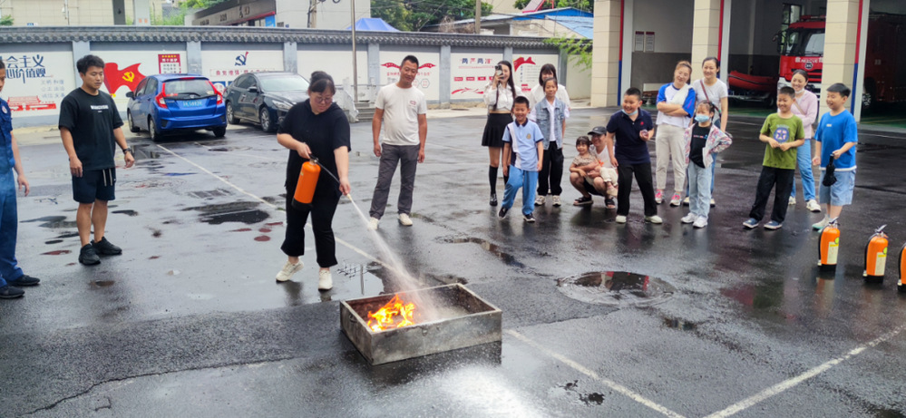 最后,在消防隊員的指導下,家長們進行了滅火演練,一旁觀摩的孩子們為家長們的表現鼓勁歡呼。
