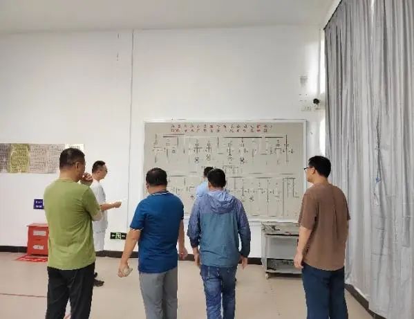 演練分為兩個(gè)部分。一是模擬將水頭線(xiàn)對(duì)1#主變供電調(diào)整為水北線(xiàn)對(duì)2#主變供電。變電所值班人員首先根據(jù)模擬要求,填寫(xiě)倒閘操作票。確定操作票無(wú)誤后,一人監(jiān)護(hù),一人操作,在變電所模擬屏上進(jìn)行倒閘操作。二是模擬在倒閘操作后已恢復(fù)廠用電的情況下,對(duì)送水泵房、加藥間、取水泵房、提升泵房、深度處理車(chē)間等部位進(jìn)行生產(chǎn)恢復(fù)。隨后立即巡視各工藝段出水及設(shè)備運(yùn)行情況,并關(guān)注在線(xiàn)儀表數(shù)值是否正常。