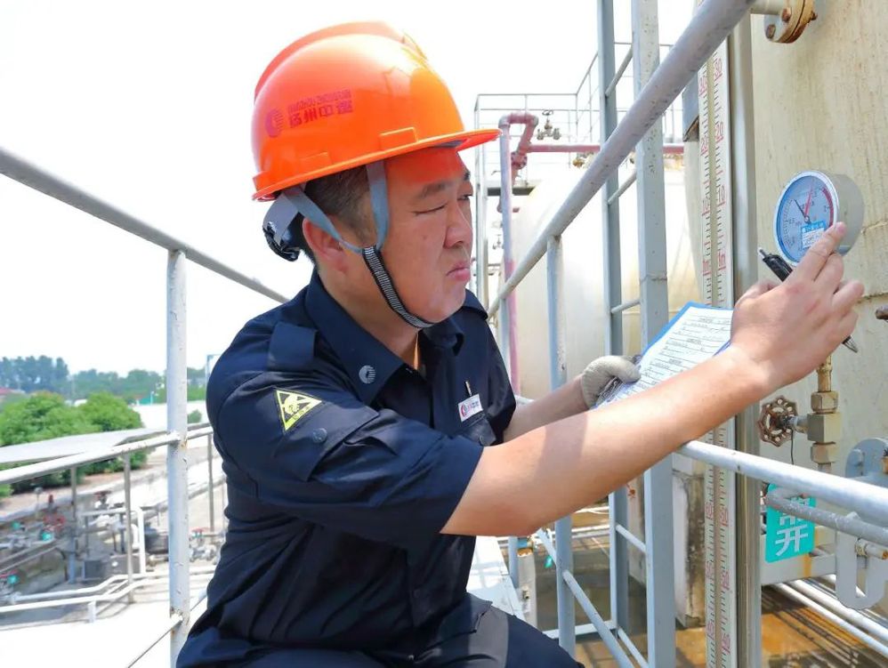 他及時收看天氣預(yù)報,夏季在觀察到氣溫超過警戒線后,他迅速組織開展噴淋作業(yè),對儲液罐罐體進行降溫,確保設(shè)備安全穩(wěn)定運行。當冬季降溫前,他對場站罐區(qū)進行仔細巡查,對排污閥進行排污作業(yè),防止出現(xiàn)閥門凍裂等安全隱患。