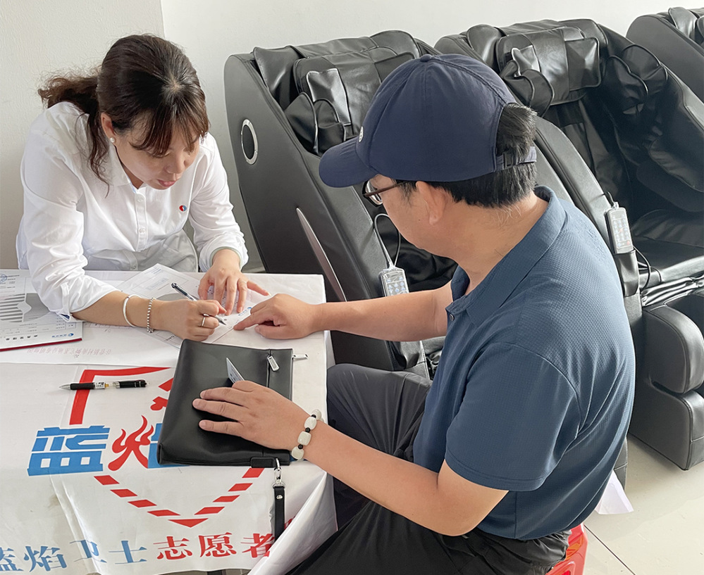 活動前期,“藍焰衛士”通過小區管道竣工圖、居民戶數來預估業務量,并前往現場與社區對接,溝通活動時間與辦公地點?;顒蝇F場分工明確、井然有序。夏日炎炎,為盡可能縮短群眾排隊等待時間,藍焰衛士放棄休息,輪流上崗,以專業、敬業的態度為大家盡快完成業務辦理?;顒赢斕炖塾嬮_戶104戶。
