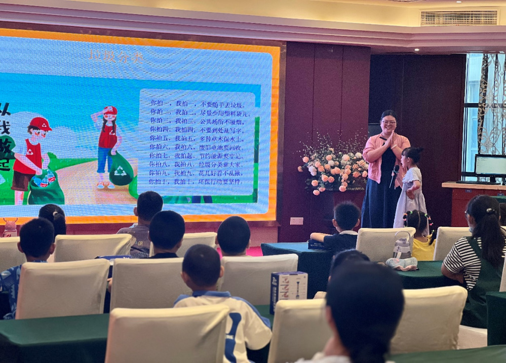 “小朋友們,在日常生活中,我們能為環(huán)保做些什么事情呢?”“進(jìn)行垃圾分類”小朋友們隨即說道,通過與小朋友們熱情互動,志愿者們鼓勵孩子們積極舉手發(fā)言,與在場的小朋友們齊聲誦讀環(huán)保兒歌,并鼓勵他們大膽發(fā)表自己的觀點,讓他們明白垃圾是放錯了地方的資源,正確地進(jìn)行垃圾分類可以變廢為寶。