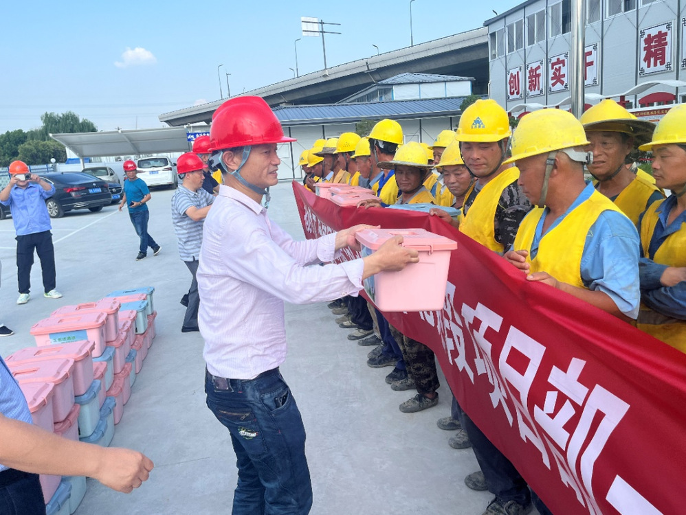 活動現(xiàn)場,市總工會范華一行為高溫下堅守崗位的工人師傅道辛苦、說感謝、送關(guān)懷,并遞上高溫清涼慰問品。范華囑托運河路北延項目部一定要抓好施工一線人員的防暑降溫和健康安全工作,特別是當前面臨著戰(zhàn)高溫、防汛防臺等形勢。同時,他激勵項目部全體人員要繼續(xù)保持“精益卓越、拼搏奉獻”的大愛精神,為揚州的建設(shè)和人民美好生活貢獻力量。