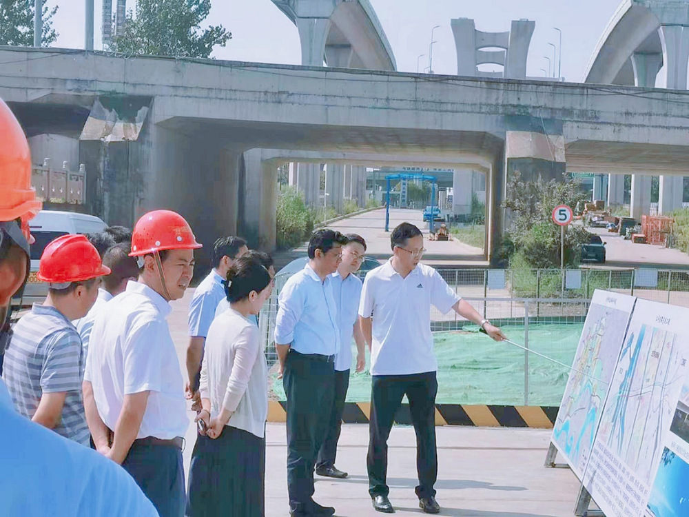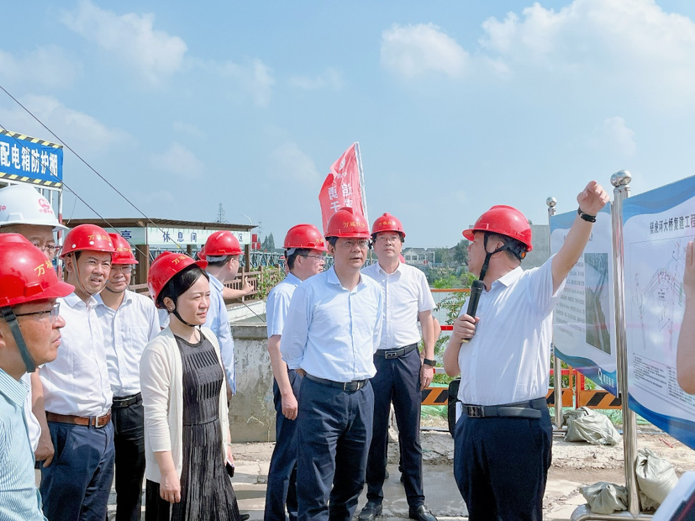 在施工現場,王進健一行聽取了壁虎河大橋工程、運河路北延工程施工進度及存在問題的匯報。他強調,城控集團要對照年度目標計劃要求,強化責任落實,明確目標節點,持續攻堅克難,在保證安全質量的前提下,全力推動項目建設提速增效,確保項目及早建成投用、早日發揮效益。