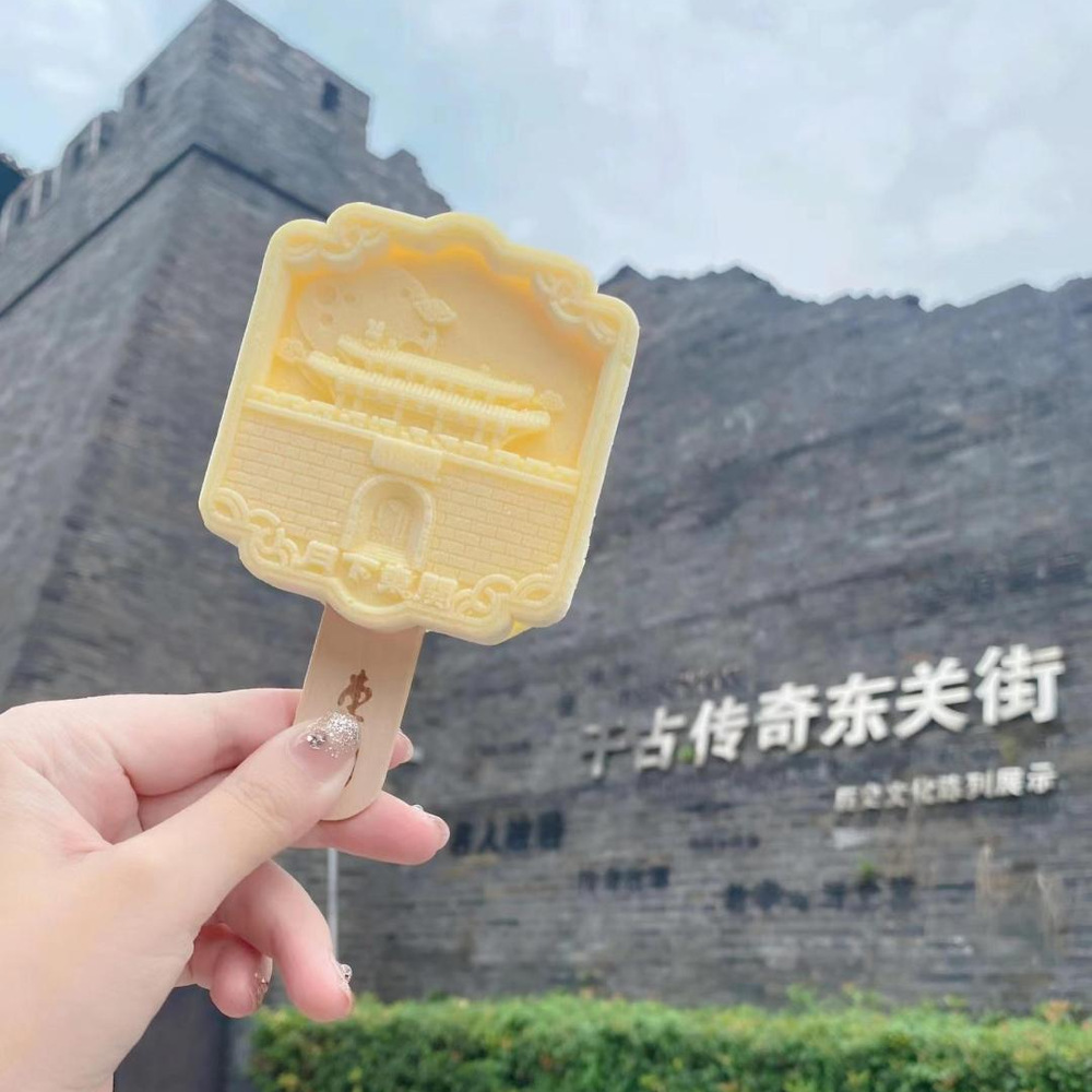 此次推出的文創冰淇淋將地標性建筑等比例縮小的“建筑派”,是文創雪糕中極具代表性的一種,雪糕造型借鑒了東關街城門樓的概念,雪糕將古代城樓的遺風凸顯的恰到好處,將十大歷史文化名街的氣派展示的淋漓盡致。手持“mini”版和建筑本體來張合影,已經成為了新興的旅游打卡方式之一。