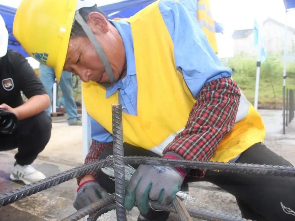 鋼筋工、焊工技能競賽活動中,選手們各個精神飽滿,紛紛拿出看家本領,全身心投入其中。焊工技能比賽現場焊花飛濺、弧光四溢,電光火石之間呈現出緊張激烈而又規范有序的氛圍;另一邊的鋼筋工技能競賽選手們也不甘示弱,搶速度、追精度、比力度,細細鐵絲牢牢綁扎住的不只有鋼筋,更有他們彼此之間的默契。經過2個小時的激烈比賽后,評委組對參賽選手的作品進行了公平公正的評選,并為獲獎選手頒發了獎狀。