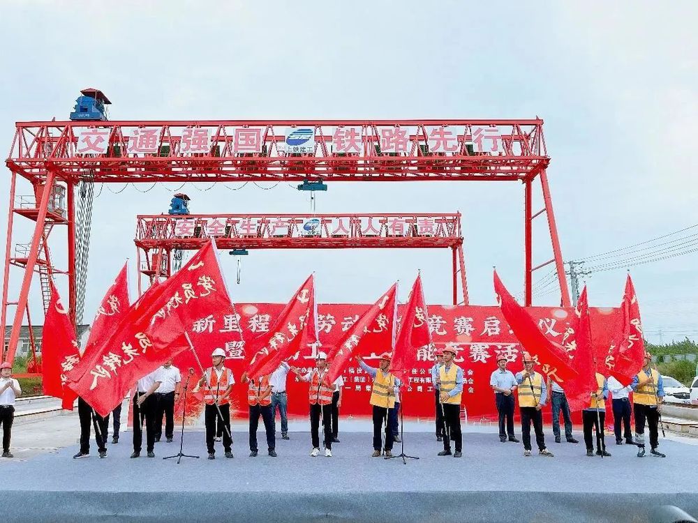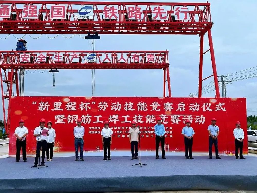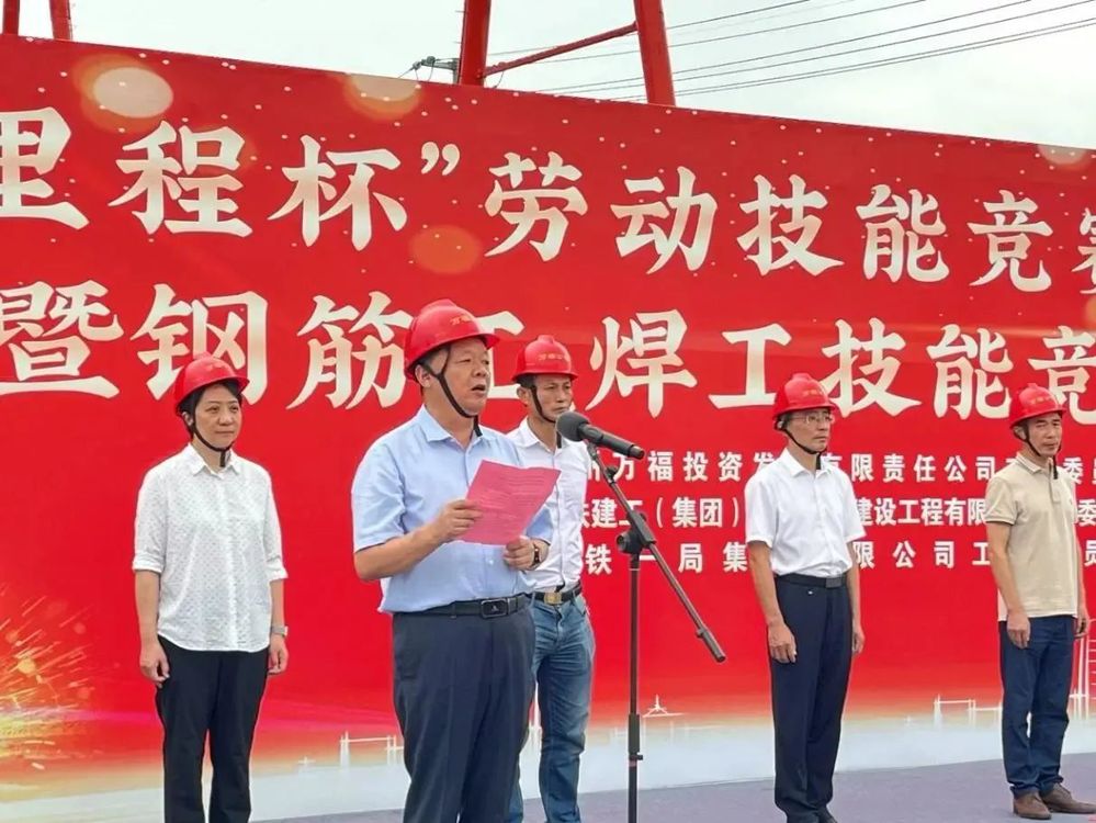 為充分調動市級重點工程壁虎河大橋及運河路北延項目參建單位及廣大員工工作積極性,不斷激發建設者勞動熱情,保證項目在安全的前提下快速推進,2023年9月15日,由萬福公司主辦的“新里程杯”勞動技能競賽啟動儀式暨鋼筋工、焊工技能競賽活動在運河路北延工程施工現場舉行。揚州市總工會副主席伍瑞慶,揚州市住建局黨委委員、副局長肖波,揚州市城控集團黨委副書記徐飛,黨委委員、副總經理季紅軍,揚州市總工會建設產業工會主任范華,城控集團直屬聯合基層工會主席徐紫月,萬福公司領導班子成員,各參建單位相關負責人、工會主席、項目管理人員代表及工人代表參加了活動。