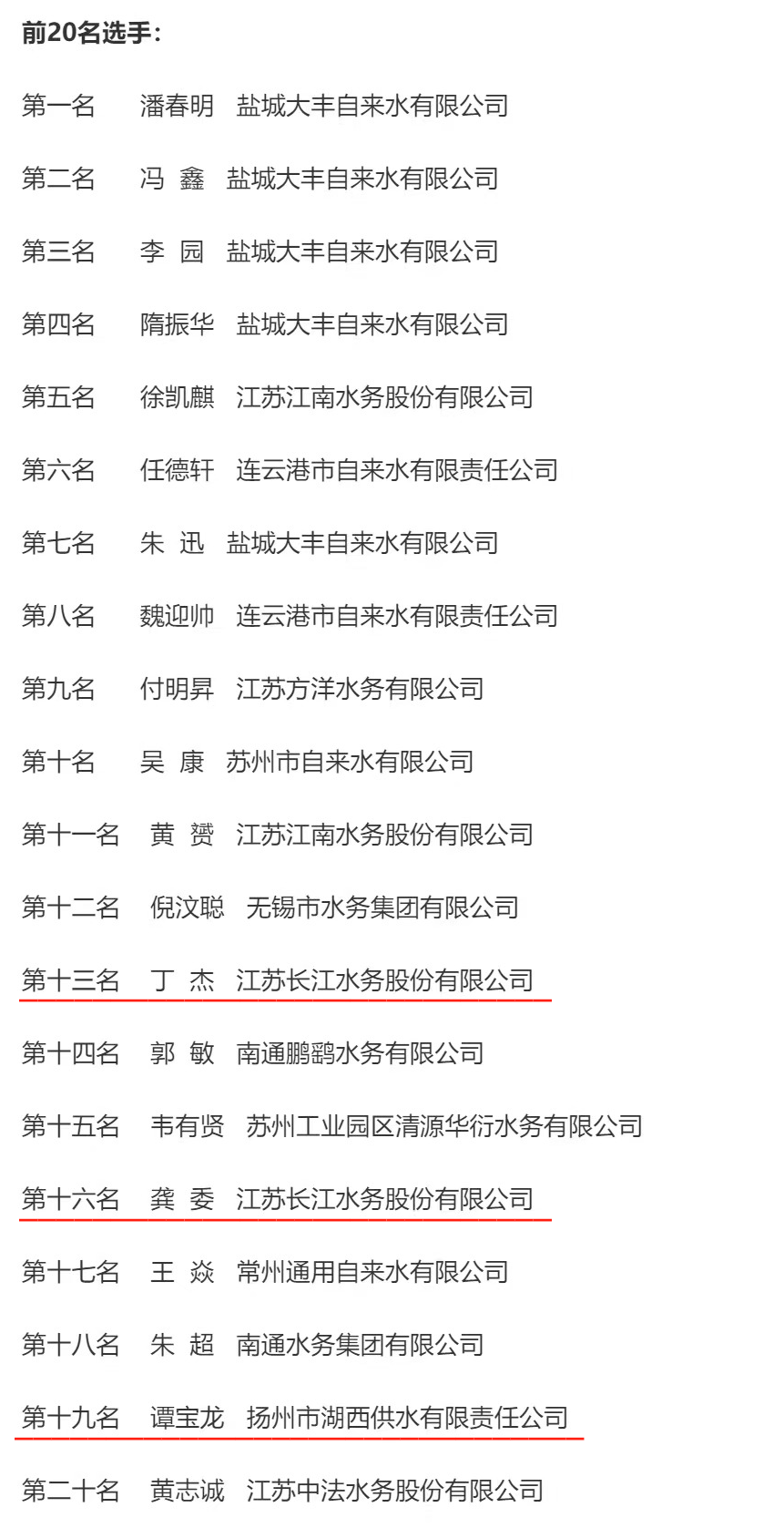 功夫不負(fù)有心人,他們在賽場上充分發(fā)揚奮勇爭先、團(tuán)結(jié)奮斗的精神風(fēng)貌,賽出了水平、賽出了狀態(tài),展現(xiàn)了長江水務(wù)一線職工良好的專業(yè)素養(yǎng)和過硬的技術(shù)技能水平,為長江水務(wù)公司和揚州代表隊贏得了榮譽(yù)。