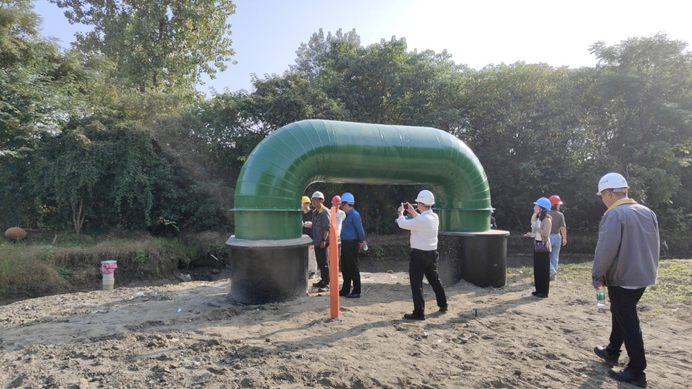 三期四標管道設計DN600主管從三期三標段接出,沿廖家溝河堤西外側(cè)向北敷設至廣陵大橋,與已建二期管線預留口連接,全長約2206米。其中,過328國道頂管部分為三期四標施工關(guān)鍵節(jié)點,長約199米,兩座沉井分別位于328國道南、北兩側(cè),施工工藝復雜,精度控制要求高。公司項目組堅持問題導向,聚焦項目推進中存在的難點,強化要素保障,積極協(xié)調(diào)解決,以優(yōu)質(zhì)的施工工藝、嚴格的質(zhì)量把控、科學的施工方案,確保了頂管施工的安全可控、精準對位。
