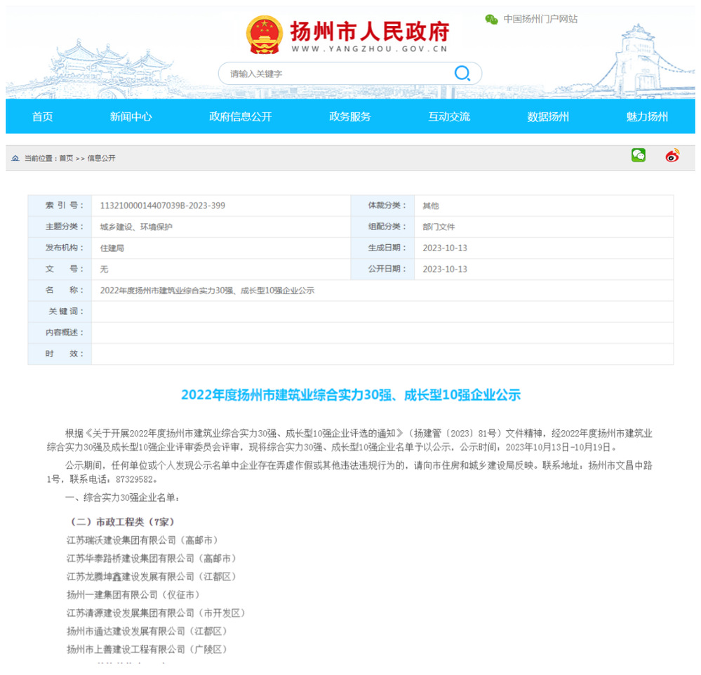 近日,揚州市建筑業(yè)綜合實力30強(qiáng)、成長型10強(qiáng)評選結(jié)果公示,上善公司成功晉級揚州市建筑業(yè)綜合實力30強(qiáng)。