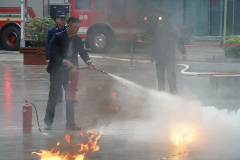 在消防疏散應急演練環節,演練人員模擬國泰大廈發生火災,開展了值班人員確認火情、初期滅火、人員疏散逃生、報警和引接消防員等應急演練流程。同時,邗江區消防大隊在內街廣場開展了消防滅火器的使用培訓,職工、物業管理、業主代表等人員參與了滅火器使用實操。