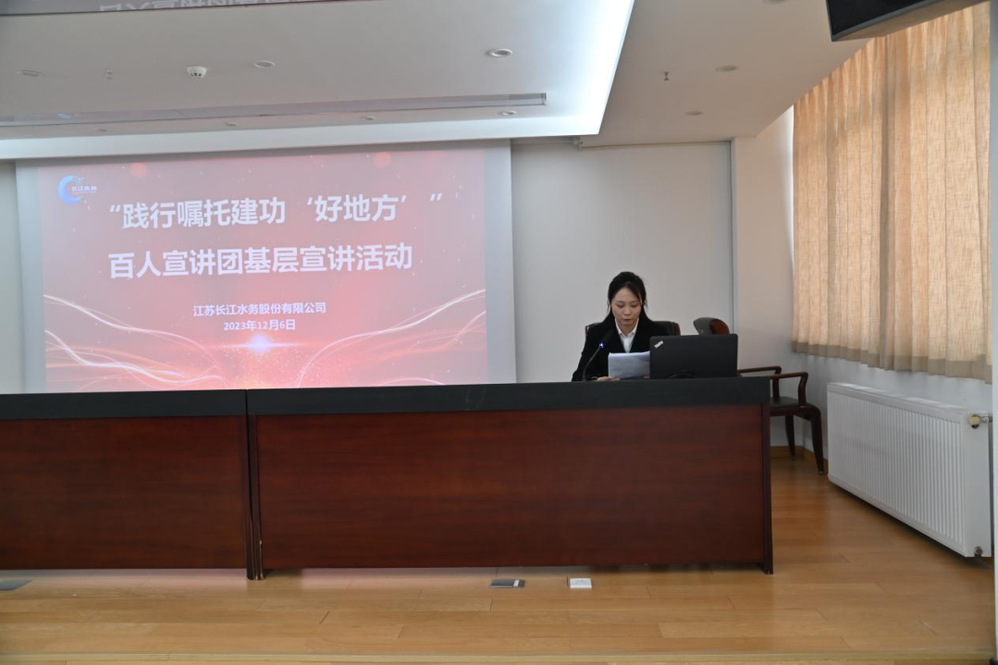 為深入學(xué)習(xí)貫徹習(xí)近平新時(shí)代中國(guó)特色社會(huì)主義思想,切實(shí)推動(dòng)主題教育深入基層、走深走實(shí),12月6日,長(zhǎng)江水務(wù)開(kāi)展“踐行囑托建功‘好地方’”百人宣講團(tuán)基層宣講活動(dòng),公司領(lǐng)導(dǎo)班子、全體中層干部和部分職工代表參加了活動(dòng)。