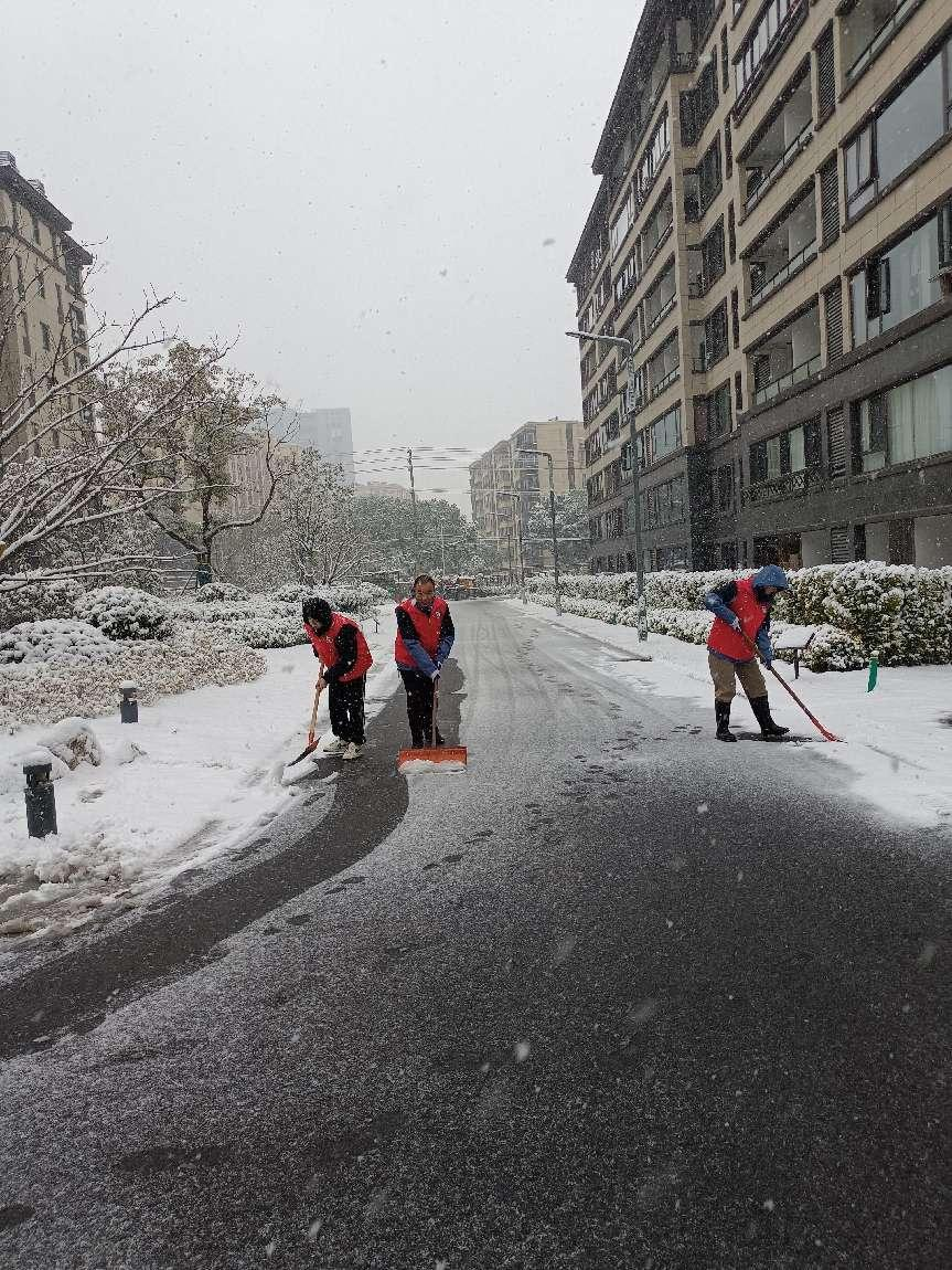 為消除隱患,保障業主、商戶、居民的出行,資產公司各服務項目迅速行動,迎著簌簌雪花,通過“撒鹽融雪”、人工鏟雪等方式優先對積雪嚴重,車流量、人流量大的路段進行了全面清理,同時在坡道、門廳處鋪設了防滑草席、毛氈等。