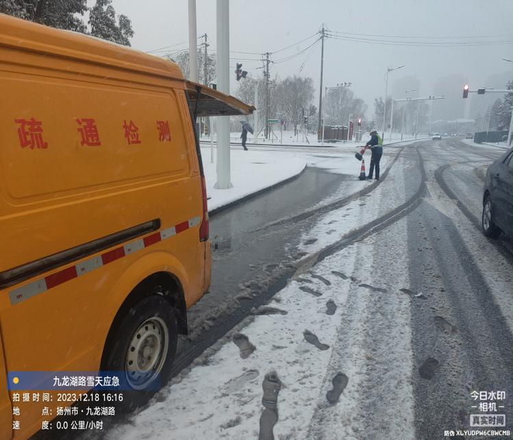 12月18日早,揚州迎來了2023年首次大雪,伴隨著凜冽寒風,氣溫驟降,路面很快就有了一層積雪,積雪反復踩踏、碾壓極易結冰,給行人、車輛出行造成很大的安全隱患。