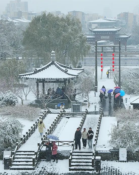 游客和市民相約沓來,欣賞銀裝素裹的東關街,邂逅一場純凈唯美的浪漫,品味豐盈雋永的詩意。