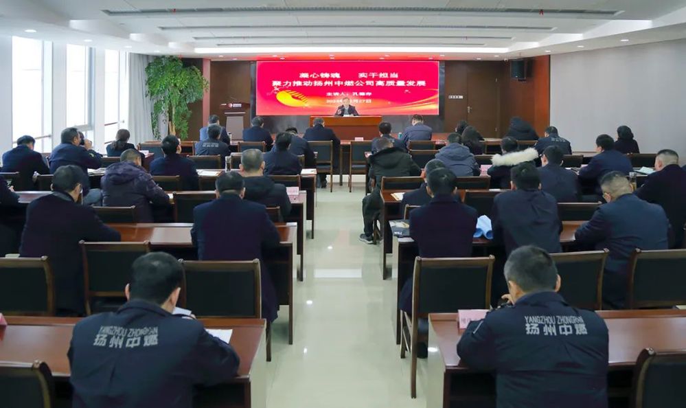為推進主題教育走深走實,凝聚新征程奮進力量,12月27日下午,揚州中燃公司黨委組織開展黨員集中教育培訓(xùn)。城控集團黨委委員、副總經(jīng)理、揚州中燃公司黨委書記、董事長孔德存出席會議,揚州中燃公司領(lǐng)導(dǎo)班子成員、中層干部和黨員代表近100人參加。