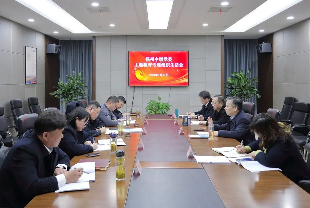 1月17日下午,揚州中燃公司黨委召開學習貫徹習近平新時代中國特色社會主義思想主題教育專題組織生活會。城控集團黨委委員、副總經理孔德存到會指導,集團考核組、公司領導班子成員參加會議。
