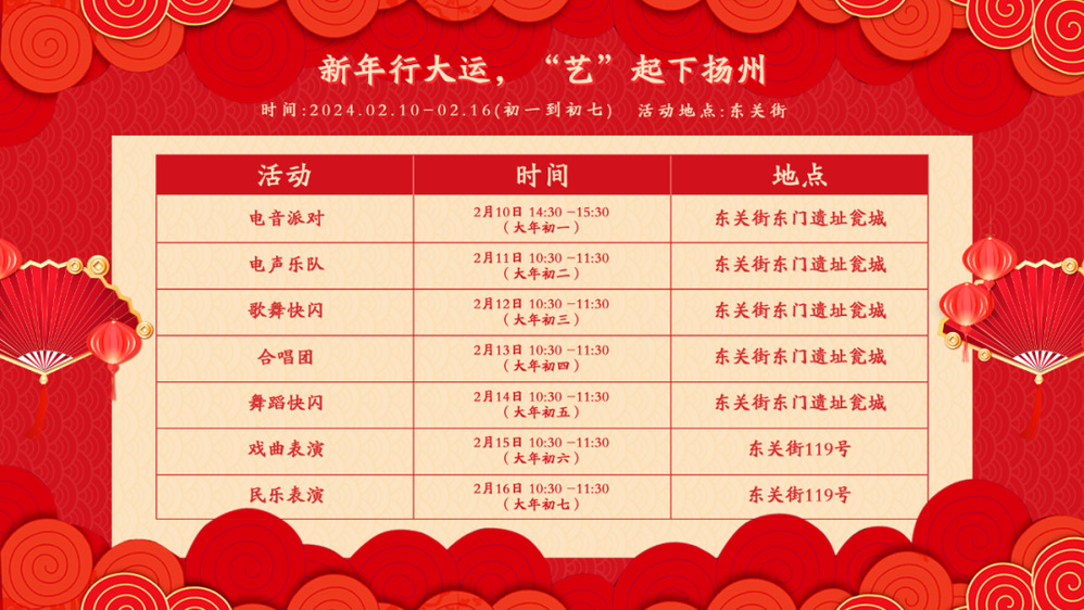 大年初一,揚州東關(guān)街東門一片歡騰,《“新年行大運,藝起下?lián)P州”電音派對》活動于下午2:30在這里盛大開幕,為市民和游客帶來了別樣的新年體驗。