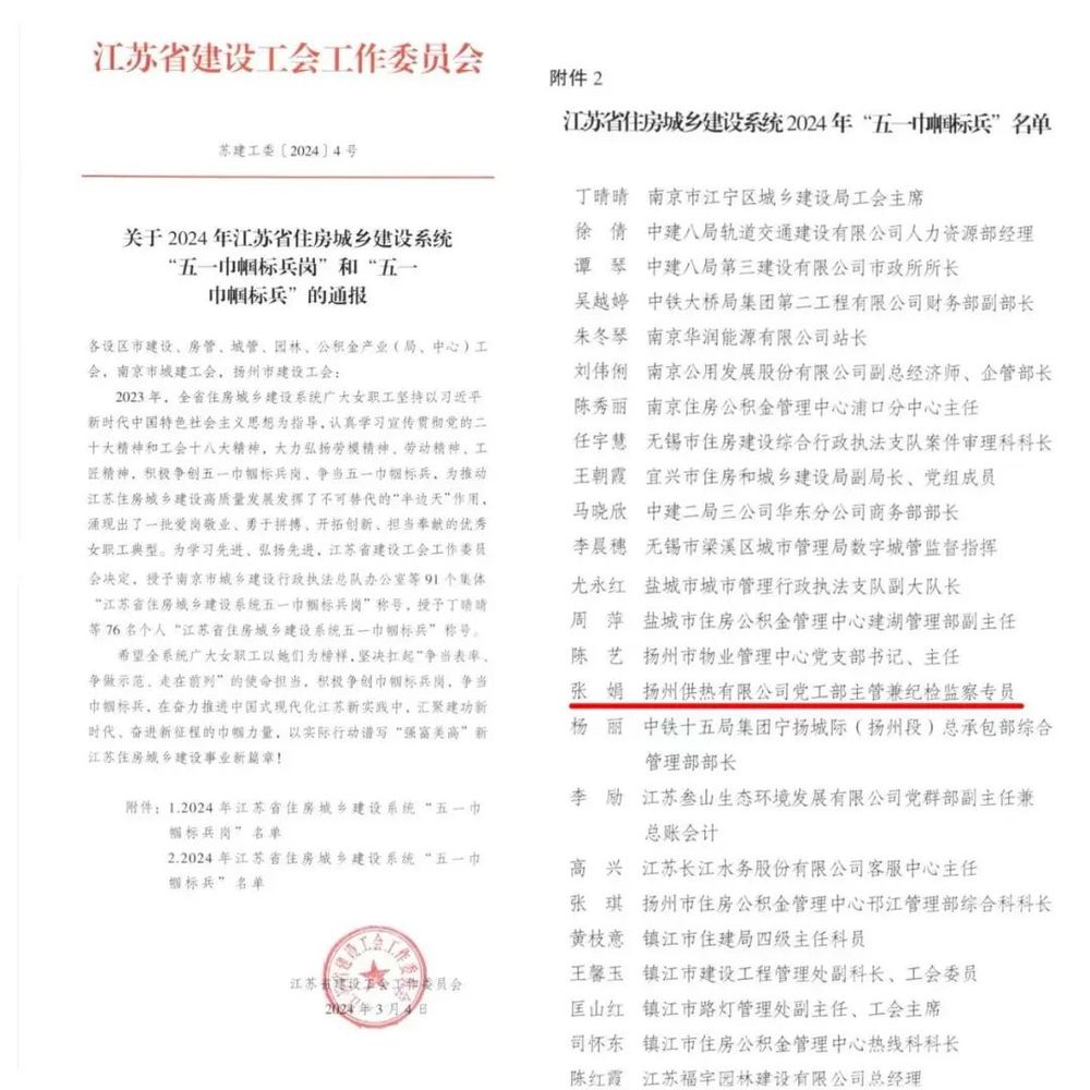 江蘇省住房城鄉建設系統五一巾幗標兵