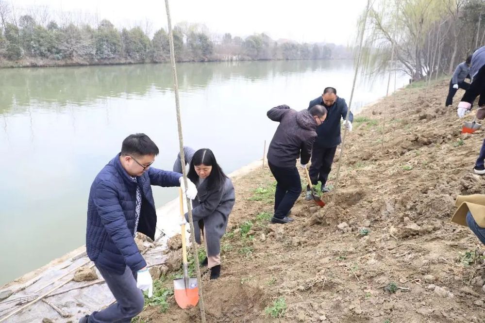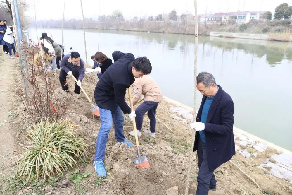 植樹(shù)現(xiàn)場(chǎng),春光明媚,河堤上處處都是大家忙碌的身影,大家配合默契,揮鍬鏟土、扶苗培實(shí),有條不紊地栽下一棵棵楊樹(shù)苗,為軍師村打造生態(tài)河道工程貢獻(xiàn)一份力量。