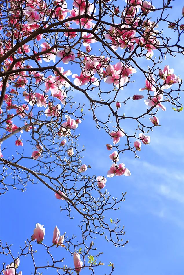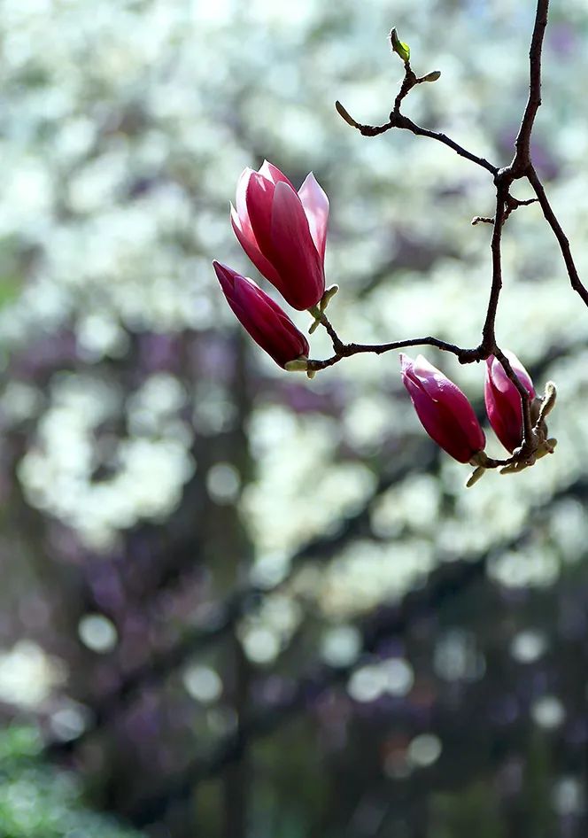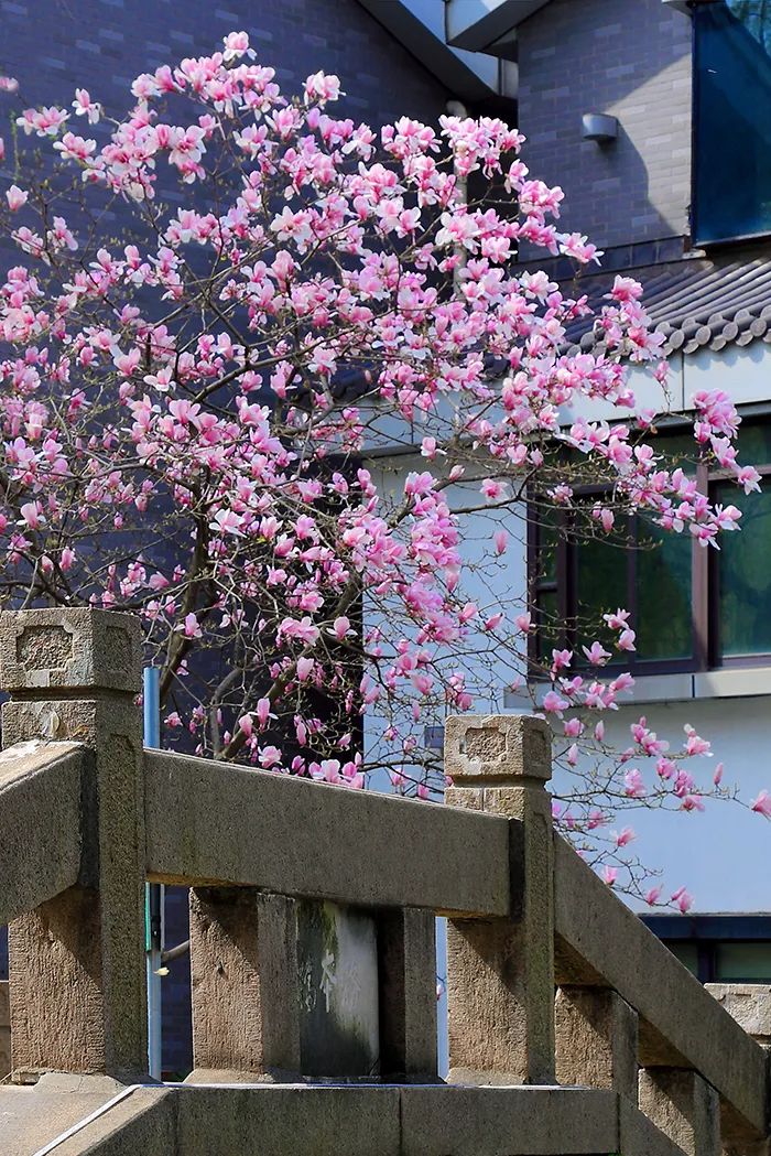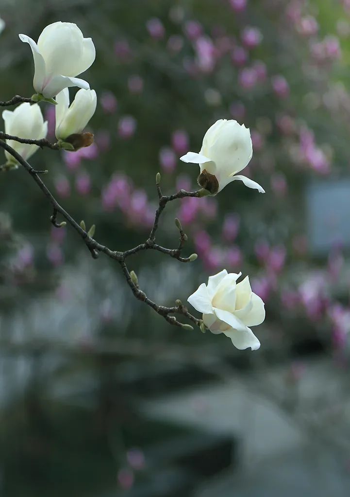 春風輕拂,小秦淮河兩岸一株株玉蘭花樹傲然挺立,似白鴿飛舞、如彩蝶翩翩,讓人感受到了溫暖和陪伴。白色的花朵玉潔冰清、輕盈純凈,紫色的花朵燦若云霞、風姿綽約,它們相約悄然綻放,以最溫婉的方式宣告春暖花開,以最熱情的方式喜迎賓朋。