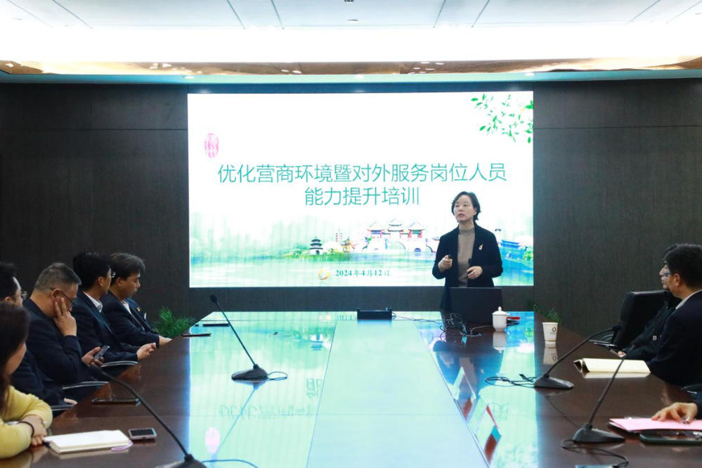 為進一步提升公司對外服務崗位人員綜合能力水平,推動政務服務規范化標準化,4月12日下午,供熱公司特邀揚州職業大學旅游學院副院長、副教授任孝珍開展優化營商環境暨對外服務崗位人員能力提升培訓。