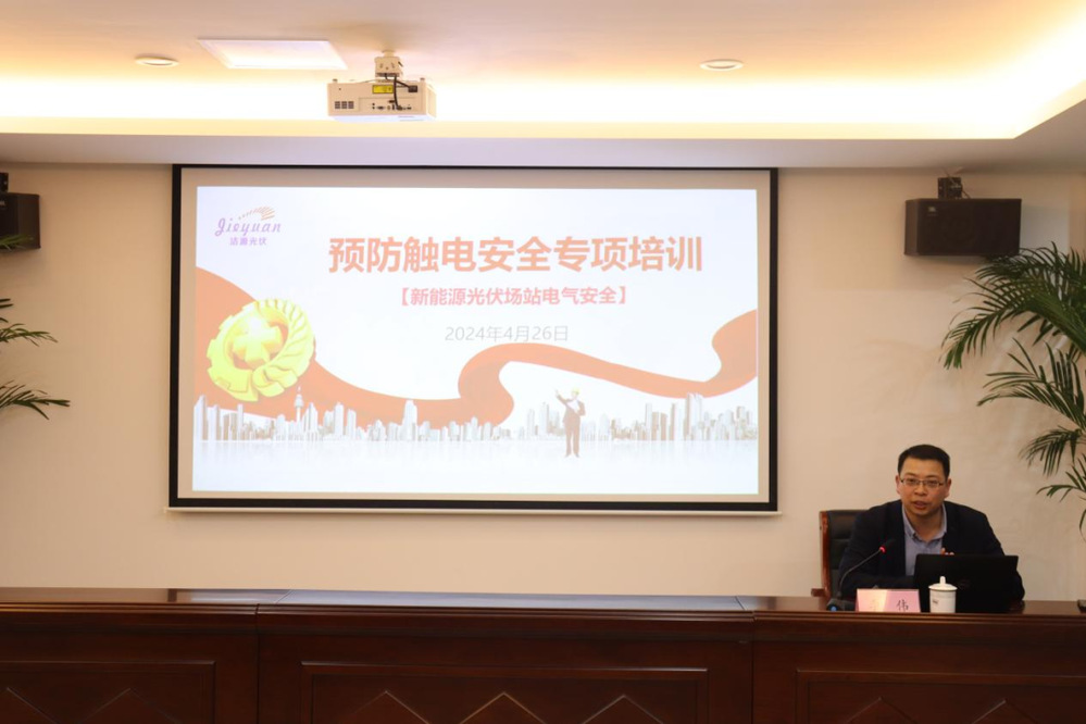 為進一步提升員工的安全防范意識和應急處置能力,有效預防光伏電站觸電事故發(fā)生,4月26日下午,潔源光伏公司組織開展預防觸電安全專項培訓,公司干部職工代表參加培訓。