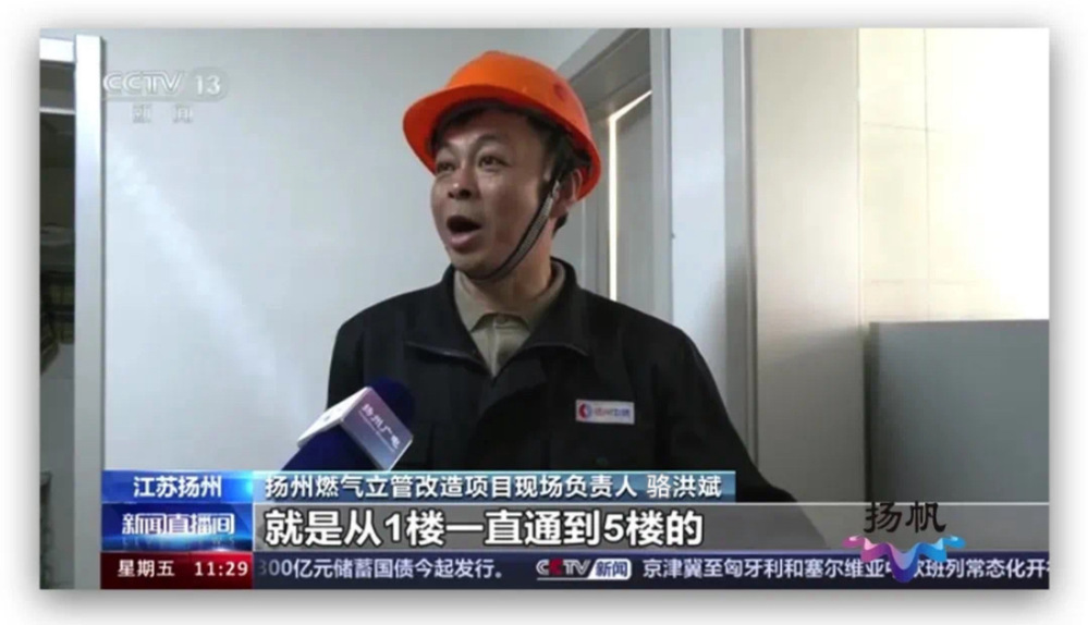 國務(wù)院關(guān)于印發(fā)《推動大規(guī)模設(shè)備更新和消費(fèi)品以舊換新行動方案》正在各地落實(shí)。從4月底開始,揚(yáng)州持續(xù)開展了老舊小區(qū)燃?xì)獍踩[患排查,啟動戶內(nèi)老化燃?xì)饬⒐芨脑旄鹿こ獭?月10日中午,央視《新聞直播間》報(bào)道了揚(yáng)州這一改造更新工程。