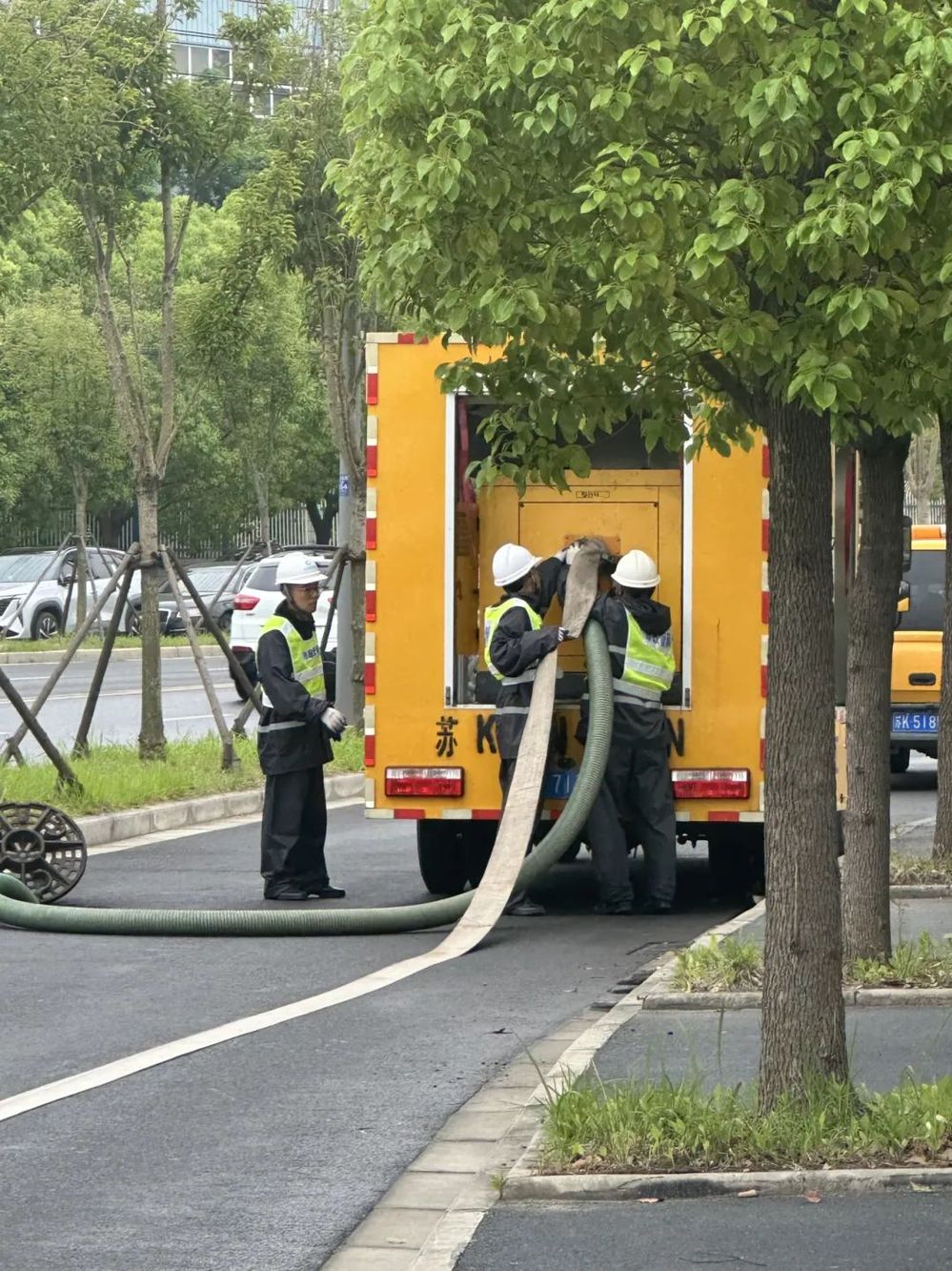 圖為荷葉東路雨天滿溢演練處置現場