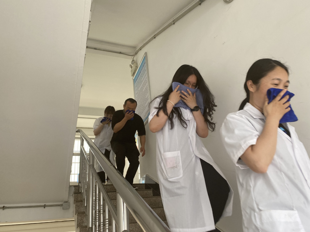 本次演練模擬辦公區域突發火情,伴隨著辦公樓消防自動警報響起,消控室消防廣播傳來疏散信息,公司立即啟動應急疏散程序,各部門人員迅速在安全員的引導下,用濕毛巾捂住口鼻、彎腰沿著樓梯有序的疏散至樓下安全地點,由各部門清點人數,確認全部人員安全疏散。
