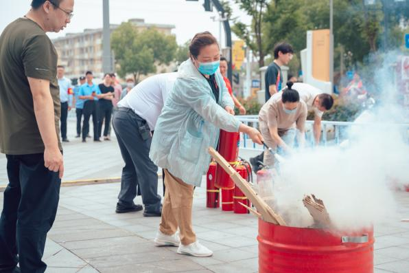 本次演練首先進行了模擬火災處置疏散演練,現場模擬了發生火災時及時報警、初期火災撲救、商場工作人員疏散、傷員救護等過程,以確保廣場消防報警系統、聯動系統、防排煙系統等消防設備在火災救援中的有效性。演練結束后,消防維保單位向大家詳細講解了滅火器滅火毯的使用方法及注意事項,并選取代表進行了現場實際操作演練。