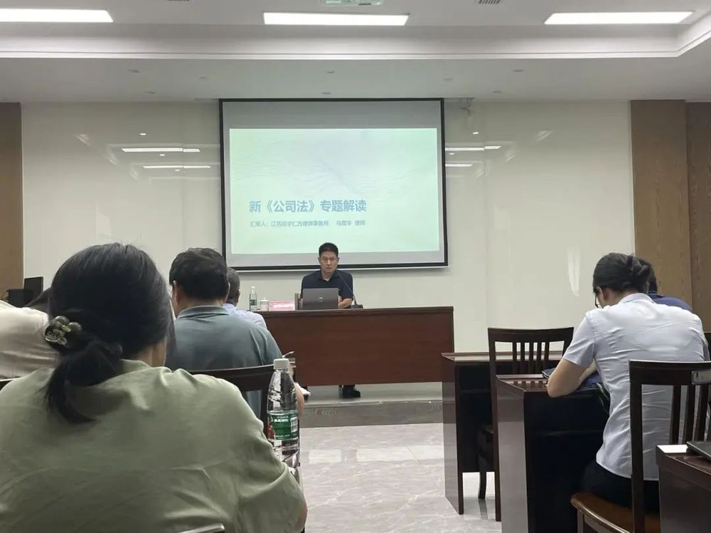 2024年7月1日起新修訂的《中華人民共和國公司法》(以下簡(jiǎn)稱新《公司法》)正式施行。為了系統(tǒng)學(xué)習(xí)、理解新《公司法》的核心內(nèi)容,加強(qiáng)企業(yè)的合規(guī)管理,做好法律風(fēng)險(xiǎn)防控,助力企業(yè)健康平穩(wěn)發(fā)展,7月19日下午,資產(chǎn)公司邀請(qǐng)來自江蘇瓊宇仁方律師事務(wù)所馬震宇律師開展了新《公司法》專題解讀培訓(xùn)。資產(chǎn)公司領(lǐng)導(dǎo)班子成員、中層干部和相關(guān)工作人員參加培訓(xùn)。