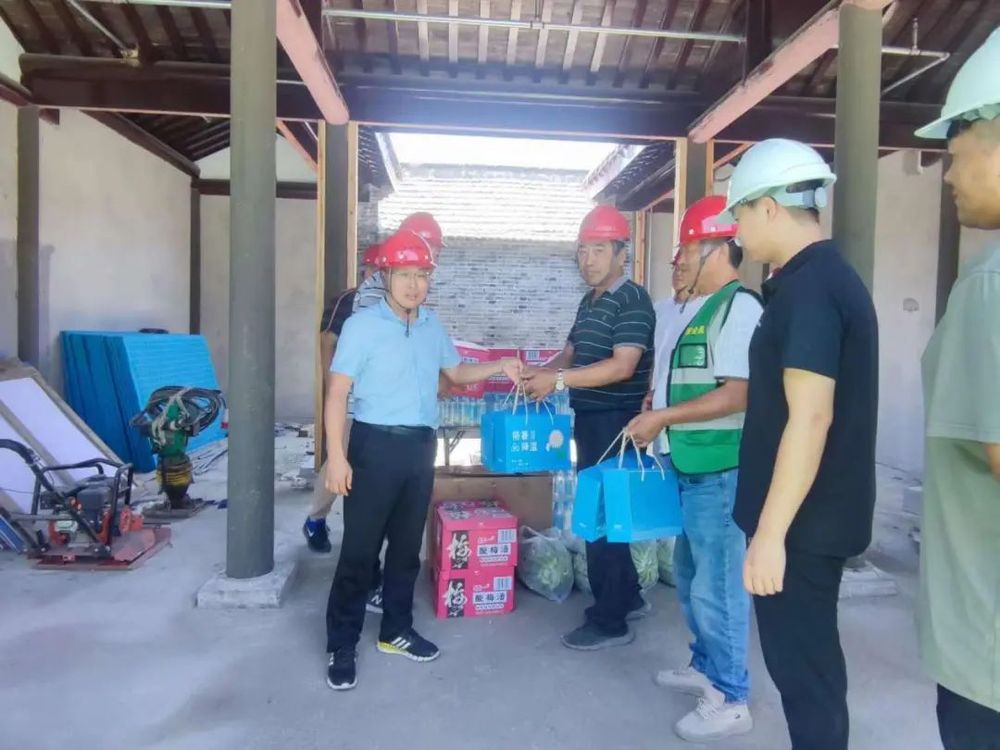 目前,小秦淮河保護更新二期先導段的三個節點已經進入主體封頂沖刺階段,適逢高溫天氣,古保公司慰問組為那些頭頂驕陽、始終奮戰在崗位一線的工人們送上了精心準備的防暑降溫物品,并叮囑職工在保持高昂斗志和飽滿熱情的同時,做好個人防護措施,合理安排工作時間,避免長時間暴露在高溫下,防止中暑、曬傷等事件發生,保證平安度夏,清涼度夏。